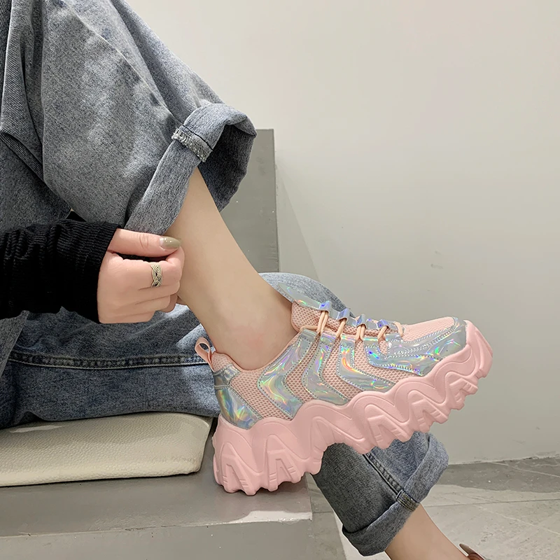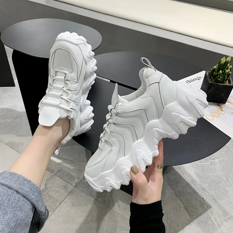 SALE 2020 Spring Women Chunky Sneakers Platform Korean Fashion Woman White Lace Up Casual Shoes Female B