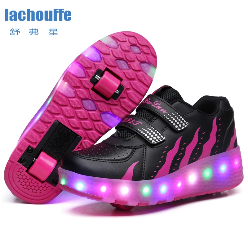 SALE Kids Glowing Sneakers with Wheels Led Lights Up Shoes Women Roller LED lighting Shoes Child Sports