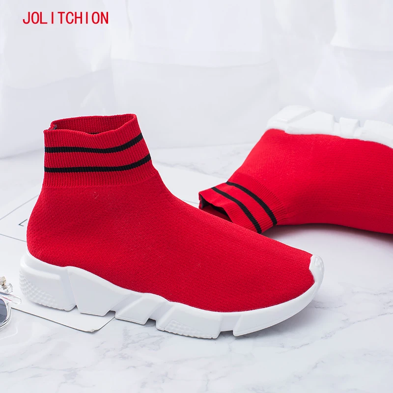 Free shipping Fashion Sneakers Woman Platform 2018 Soft Heel Woman Casual Shoes High Top Knitted Woman Leisure An