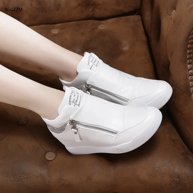 Flash Sale PU Platform Sneakers Womens Shoes White Zipper New 2019 Autumn Women Casual Shoes Woman Wedge Sneak