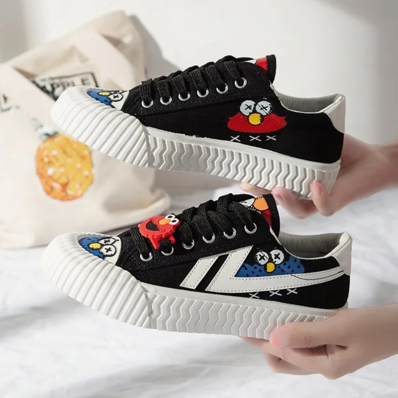 Free shipping Women Casual Shoes INS Fashion New Female Yellow Cartoon Animation Vulcanized Sneakers Lace Up Canv